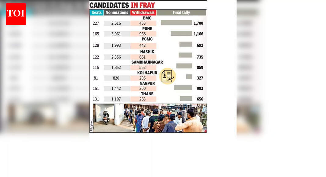 पुणे: अर्ज छाननी आणि माघारीनंतर एकूण 15,931 उमेदवार अखेर राज्याच्या महापालिका निवडणुकीच्या मैदानावर आहेत.29 महापालिकांमधील 893 प्रभागातील नगरसेवकांच्या 2,869 जागांसाठी हे उमेदवार निवडणूक लढवणार आहेत. 15 जानेवारीला निवडणुका होणार आहेत.सुरुवातीला एकूण 33,427 उमेदवारी अर्ज दाखल झाले होते. त्यापैकी 24,771 वैध घोषित करण्यात आले. तब्बल 8,840 उमेदवारांनी अर्ज मागे घेतले.राज्य निवडणूक आयोगाच्या (एसईसी) वरिष्ठ अधिकाऱ्याने सांगितले की, “सर्व महापालिकांकडून डेटा मागवण्यात आला होता. त्यानंतर, अंतिम टॅली एकत्रित करण्यात आली होती,” असे राज्य निवडणूक आयोगाच्या (एसईसी) वरिष्ठ अधिकाऱ्याने सांगितले.“छाननी आणि माघार घेण्याची प्रक्रिया हे सुनिश्चित करते की केवळ पात्र उमेदवारच रिंगणात राहतील. हे राजकीय पक्ष आणि अपक्षांना निवडणुकीपूर्वी रणनीती अंतिम करण्यास अनुमती देते,” ते म्हणाले.बृहन्मुंबई महानगरपालिकेत (BMC) 227 जागांसाठी तब्बल 2,516 उमेदवारी अर्ज दाखल झाले होते. त्यापैकी एकूण 2,153 वैध ठरले. 453 माघारीनंतर 1,700 उमेदवार रिंगणात राहिले आहेत.पुण्यात 165 जागांसाठी 3,061 अर्ज दाखल झाले आहेत. त्यापैकी तब्बल 2,134 अर्ज वैध ठरले. 968 माघारीनंतर 1,166 उमेदवार निवडणूक रिंगणात राहिले आहेत.पिंपरी चिंच महापालिका (पीसीएमसी) निवडणूक जिंकण्यासाठीही चुरशीची स्पर्धा होणार आहे. तेथे तब्बल 1,993 उमेदवारी अर्ज दाखल झाले. अखेर 128 जागांसाठी 692 उमेदवार रिंगणात आहेत.इतर महत्त्वाच्या महापालिकांमध्ये नाशिकचा समावेश होतो. तेथे तब्बल 2,356 उमेदवारी अर्ज दाखल झाले. अखेर माघार घेतल्यानंतर ७३५ उमेदवार निवडणूक लढवणार आहेत.छत्रपती संभाजीनगरमध्ये 115 नगरसेवकांच्या जागांसाठी 859 उमेदवार आहेत. कोल्हापुरात 81 जागांसाठी तब्बल 327 उमेदवार रिंगणात आहेत.नागपुरातील १५१ जागांसाठी ९९३ उमेदवार रिंगणात आहेत. ठाण्यात 131 जागांसाठी एकूण 656 उमेदवार रिंगणात आहेत.489 उमेदवारांसह कल्याण-डोंबिवली, 432 उमेदवारांसह उल्हासनगर आणि 435 उमेदवारांसह मीरा-भाईंदरमध्येही चुरशीची लढत होणार आहे. इचलकरंजी (२३०), पनवेल (२५५) आणि मालेगाव (३०१) या छोट्या महानगरपालिकांमध्येही बहुकोरी लढती होणार आहेत.उमेदवारांची यादी अंतिम झाल्यामुळे, 15 जानेवारी रोजी होणाऱ्या निवडणुकीचा प्रचार राज्यभरात तीव्र होण्याची अपेक्षा आहे. विशेषत: पुणे, नाशिक, नागपूर आणि छत्रपती संभाजीनगर यांसारख्या शहरांमध्ये रस्ते, पाणीपुरवठा, स्वच्छता आणि नागरी पायाभूत सुविधांसारख्या स्थानिक समस्यांकडे मतदारांचे लक्ष वेधण्याची शक्यता आहे, असे राजकीय तज्ज्ञांनी सांगितले.