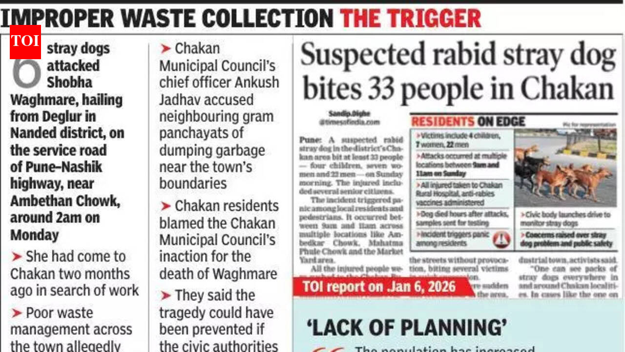 पपुणे : औद्योगिकनगरीत सोमवारी पहाटे एका महिलेचा मृत्यू झाल्याचा वारंवार इशारा देऊनही चाकण नगरपरिषदेच्या भटक्या कुत्र्यांवर कारवाई होत नसल्याचा आरोप रहिवासी आणि कार्यकर्त्यांनी केला.रहिवाशांनी असा