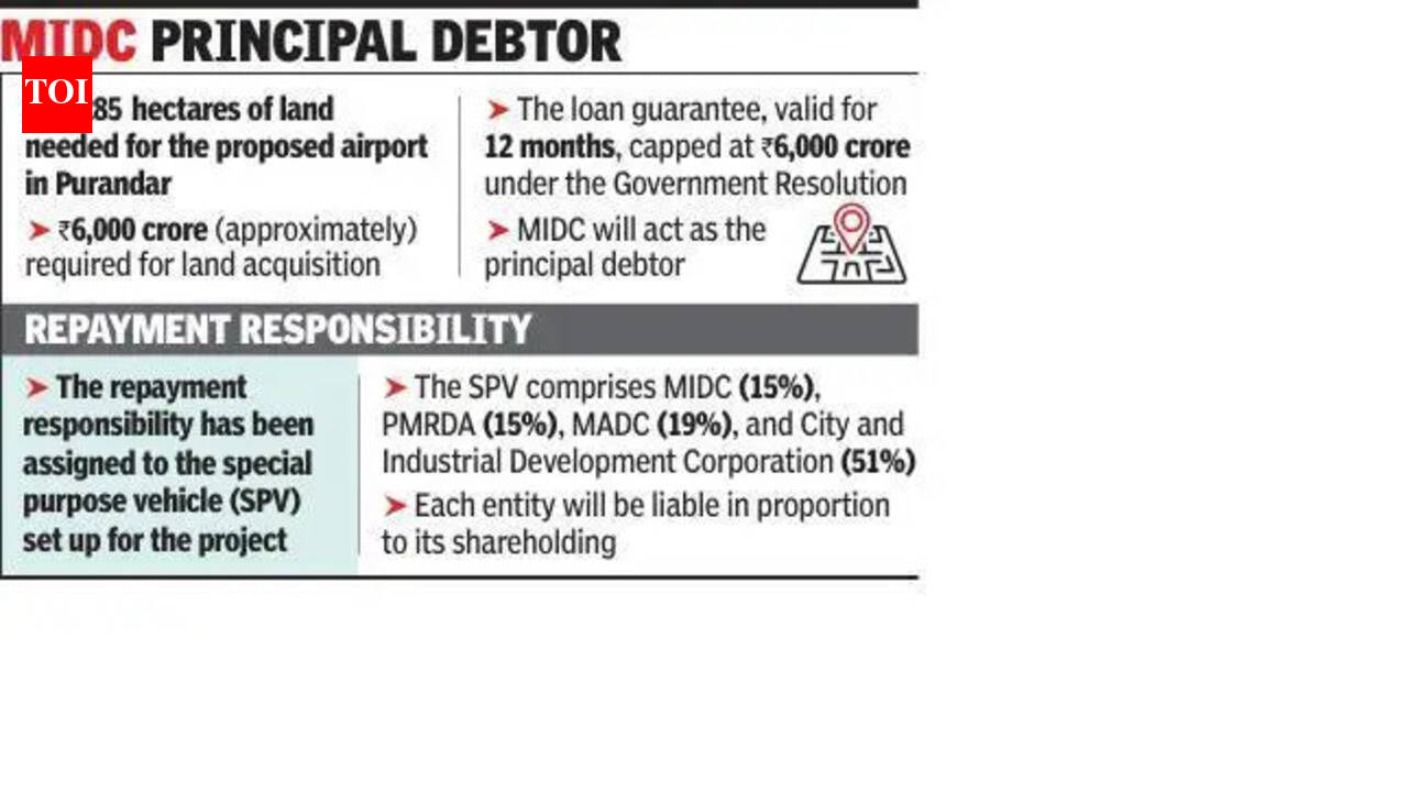 पुणे: राज्याच्या वित्त विभागाने शुक्रवारी प्रस्तावित पुरंदर विमानतळासाठी भूसंपादनासाठी 6,000 कोटी रुपयांच्या हमीच्या अटींचा तपशील देणारा शासन निर्णय (GR) जारी केला.सुरक्षितता, उत्तरदायित्व कलम आणि देखरेख